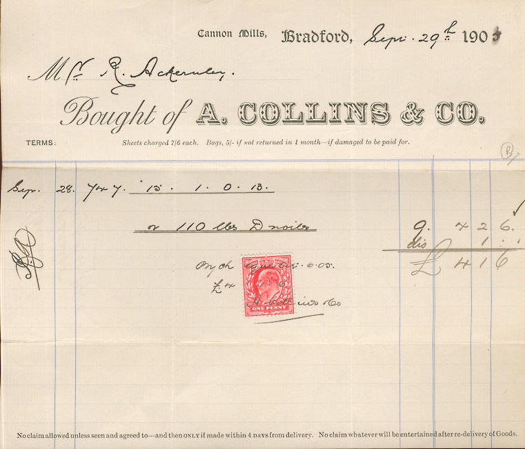 A Collins & CO Bradford. 1907.