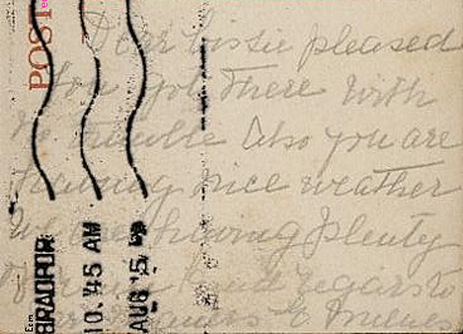 This card of Judy Bridge went here in 1903