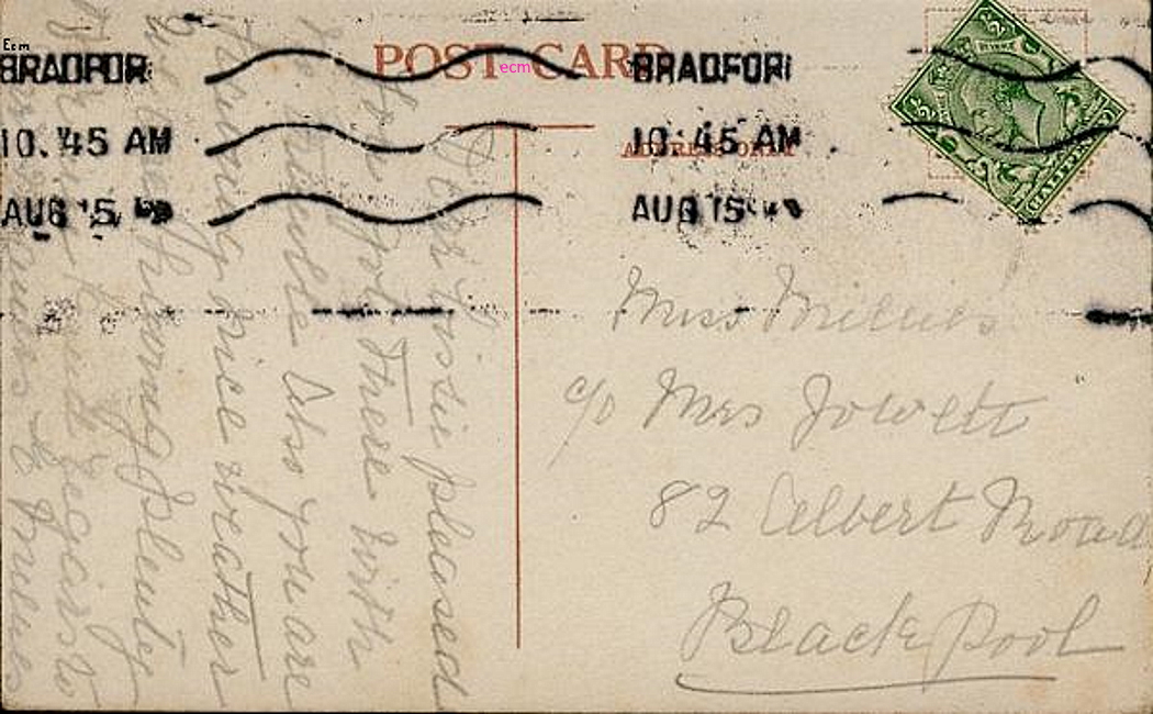 This card of Judy Bridge went here in 1903